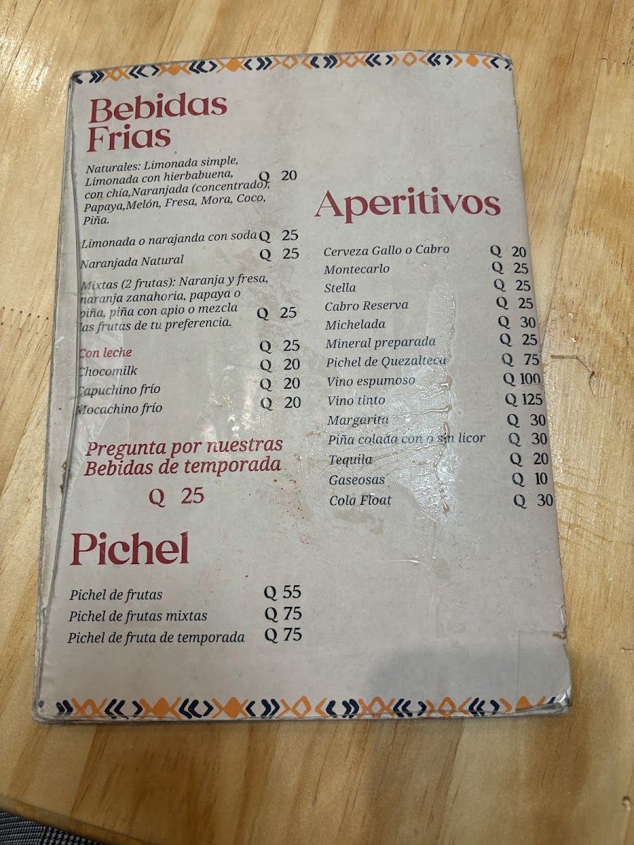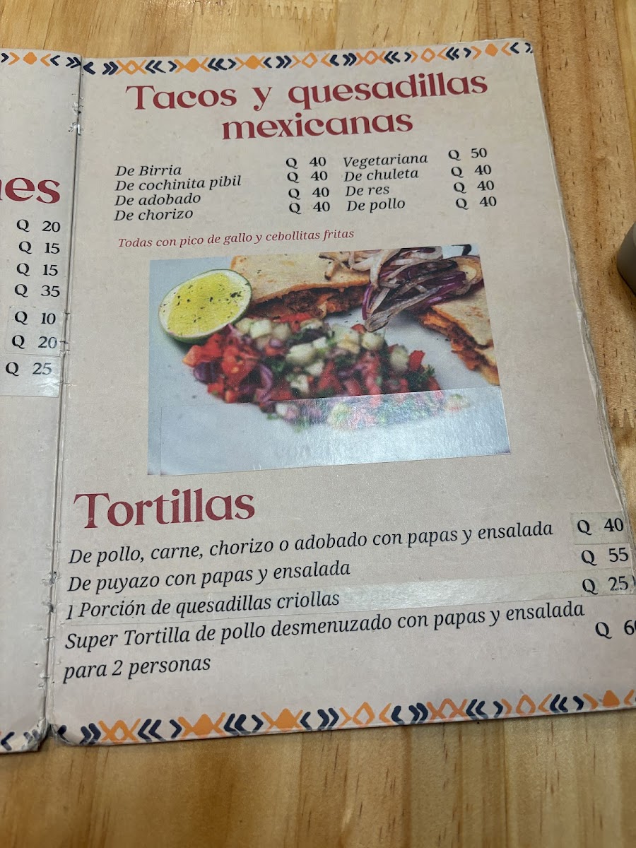 The menu at Café La Tinaja reflects a thoughtful balance between local identity and broad appeal, bringing together beverages, comfort foods, and hearty grilled dishes in a way that feels cohesive and intentional. On the drink side, options like Black Salt, Chocolate, Naranja Con Sal Negra, Café de Huehue, Limonada, Licuado de Frutas, and Smoothie de Mango O Con Chamoy highlight a mix of traditional flavors and refreshing blends, while Café Agrandado Y Sheca Con Jalea adds a distinctly regional touch. For those seeking something stronger, Cerveza Cabro rounds out the beverage selection with a casual, laid-back feel. The food menu leans confidently into grilled and barbecued specialties, with standout meat dishes such as Costillas, Costilla de Cerdo En Barbacoa, Costilla de Cerdo Con Mojito Cubano, Churrasco de Puyazo Y Adobado, and Pollo Grill, all suggesting bold marinades and generous portions. Lamb is clearly a highlight, especially with Pierna de Cordero and Rack de Cordero de Los Cuchumatanes, which elevate the menu with more refined, regional cuts. Casual favorites are also well represented through Hamburguesa Hawaiana, Amburgesa Hawaiana, Quesadillas, and Baguette Cochito En Barbacoa, offering approachable choices without losing flavor identity. Overall, the menu comes across as varied yet focused, combining traditional Guatemalan influences with familiar international formats, making Café La Tinaja’s offerings feel satisfying, well-rounded, and true to its local setting.